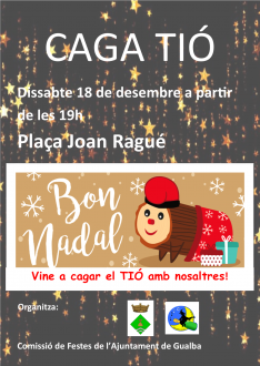 Portada > Actualitat > Agenda > CAGA TIÓ CAGA TIÓ Dia i hora: dissabte 18/12/2021 a les 19:00h Lloc: Plaça Joan Ragué Organitza: Comissió de festes de l'Ajuntament de Gualba Vine a cagar el TIÓ amb nosaltres!